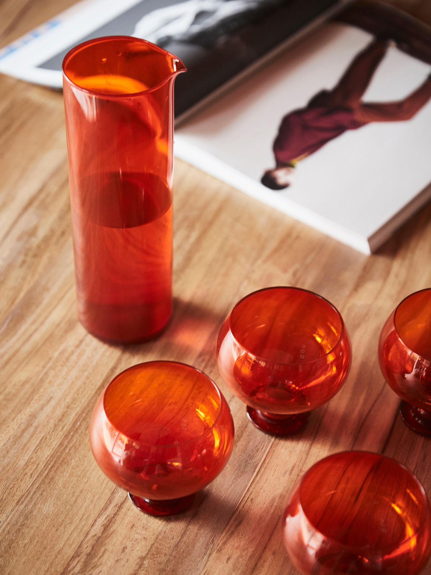 El set de jarra y copas Funky es ideal para servir tus bebidas favoritas con estilo. Con un diseño divertido y moderno, este set es perfecto para reuniones y fiestas.